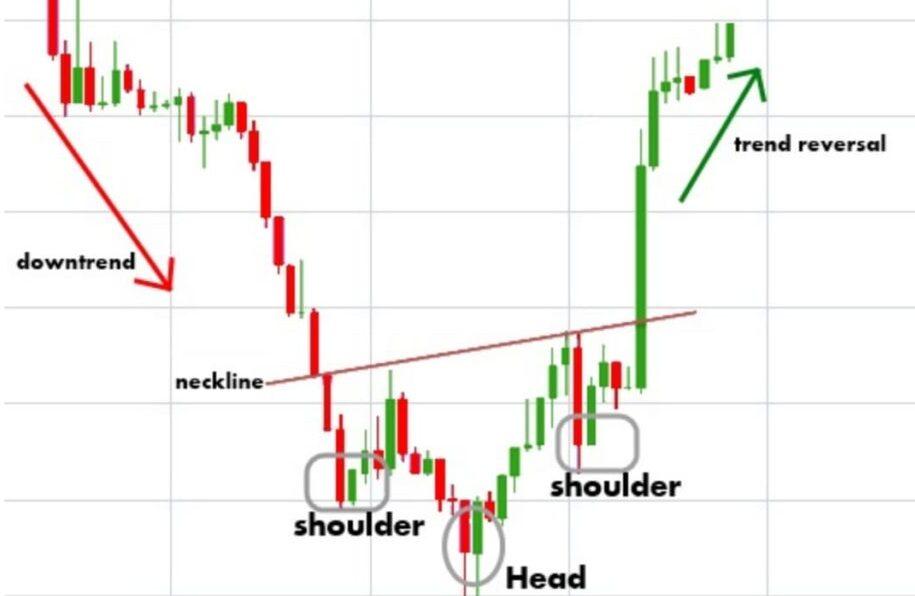 Identification: It begins with the formation of a left trough, a middle trough (lower than the other two) and a right trough (same approximate depth as that of the left trough). All these three have on a common peak line known as neckline.