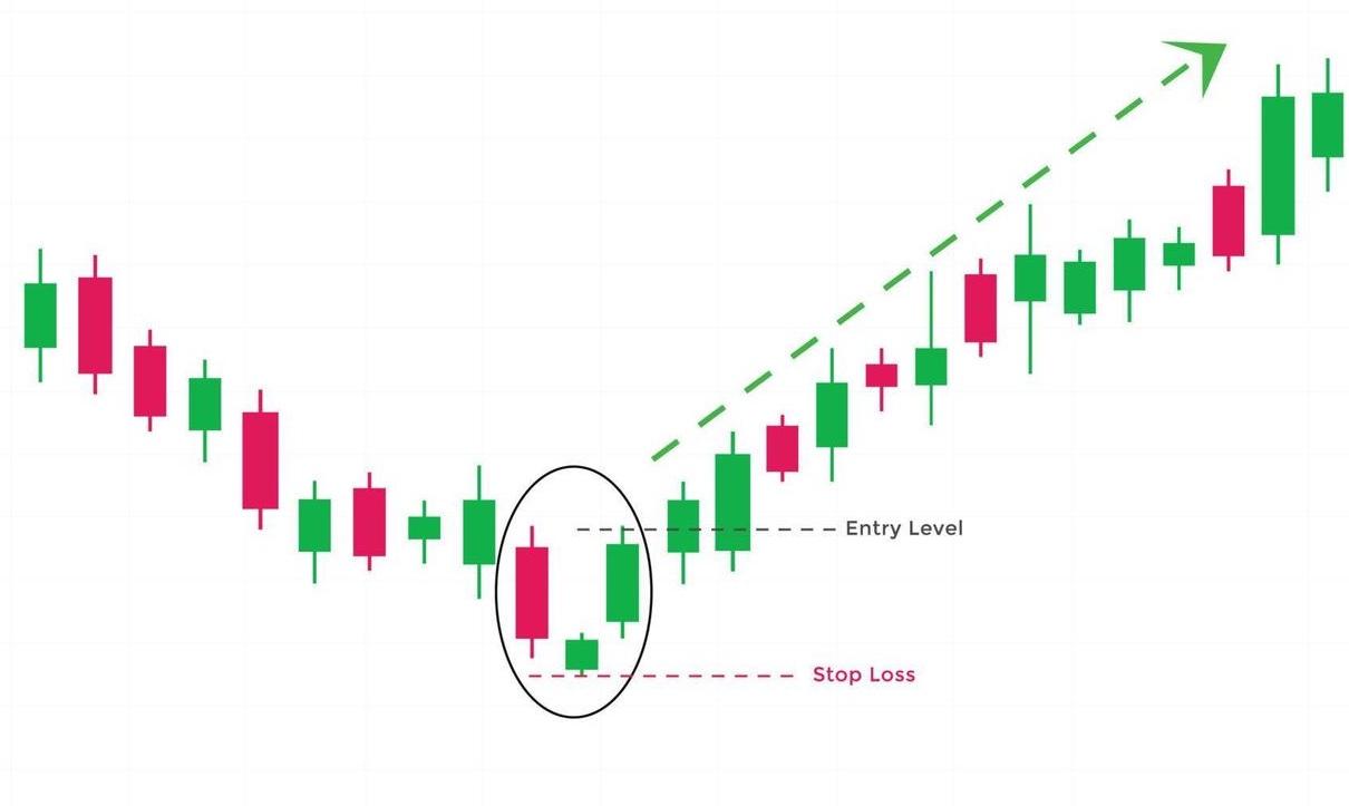 Study: A trader takes the morning star as a bullish indicator to take up a bullish position in the stock/commodity/pair/etc. Generally, an increase in volume throughout the three sessions of the pattern with the third day seeing the most volume is what confirms the trend reversal. Highest volume on the third day is often seen as a confirmation of the pattern (and a subsequent uptrend) regardless of other indicators. Traders aim to keep the bottom of the middle stick as the stop loss.